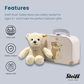 2022 é "O Ano do Ursinho de Pelúcia", marcando o 120º aniversário do brinquedo favorito do mundo. Para comemorar, aqui está um ursinho de pelúcia que você pode levar com você para onde quer que vá - durante todo o ano! Conheça Mila, uma nova ursa que está pronta para ser sua nova melhor amiga. Ela é costurada a partir de tecido de lã super macio e cor de creme, e é a amiga perfeita para todas as ocasiões. Ela vem em sua própria mala resistente, então ela já está embalada e pronta para a aventura durante "O Ano do Urso de Pelúcia" - e além! Conceda seu desejo de aniversário e adote Mila hoje!