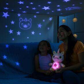 Padrões de movimento mágico: o bicho de pelúcia Star Belly Dream Lites é um brinquedo macio e confortável que cria estrelas brilhantes e formas divertidas que flutuam sobre as paredes e o teto.