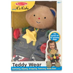 O ursinho de pelúcia Teddy Wear é um brinquedo ideal para crianças pequenas e pré escolares que estão aprendendo conceitos básicos de autocuidado e refinando a compreensão e coordenação olho mão. Ele vem vestido com uma roupa removível repleta de fechos, como botões, zíperes, abas autoadesivas, fivelas e cadarços, que ajudam a testar a resolução de problemas e as habilidades motoras dos pequenos. Além disso, a mistura de texturas adiciona muitas informações sensoriais, tornando o um brinquedo excelente para crianças de todos os níveis. É recomendado por pediatras que incentivam interações ricas entre cuidador e criança. É um presente perfeito para chás de bebê, aniversários e ocasiões especiais. Adicione uma placa de travas de madeira Melissa Doug para completar a experiência de jogo e dar às crianças outra opção envolvente para diversão sem tela. A Melissa Doug tem mais de 30 anos de experiência em criar produtos lindamente projetados para estimular a imaginação e a criatividade das crianças. É um ótimo presente para crianças pequenas e pré escolares, a partir de 18 meses, para brincadeiras práticas e sem tela.