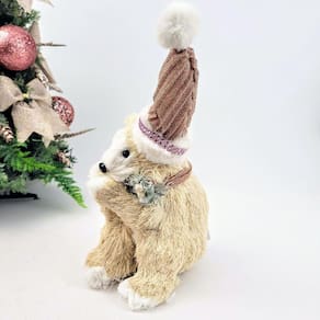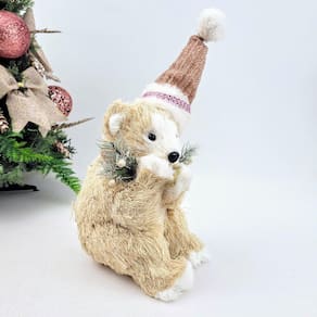 Urso Palha E Rosa Natalino 34x13x18cm Enfeite De Natal
