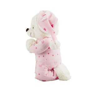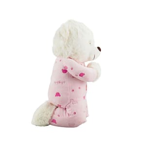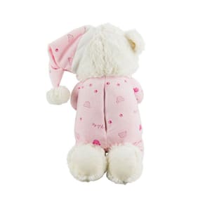 Urso Pijama Rosa Reza 36cm - PelúciaUrso Pijama Rosa Reza 36cm - PelúciaO urso de pelúcia vestido de pijama rosa, com 36cm de altura.O ursinho está em posição de rezar e ao apertar ele reza o Pai Nosso.Detalhes:Peso: 340 gramas;Altura: 36cm;Largura: 17cm;Comprimento: 21cm;Material: poliéster;Enchimento: fibra de poliéster;Produto certificado por Órgão acreditado pela CGCRE do INMETRO.Homologação Inmetro: IP-BRI-2093/2021-03