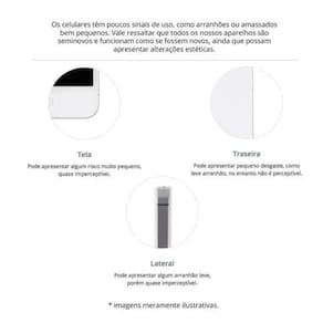 Celular Seminovo na condição Muito Bom que apresenta poucos sinais de uso na tela somente vistos de perto sob luz forte e com sinais mais nítidos nas laterais e traseira.
