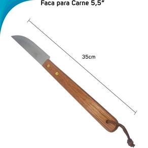 01 Garfo com cabo de madeira 01 Faca com cabo de madeira 01 Chaira com cabo de madeira 01 Pegador com cabo de madeira