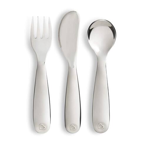 Munchkin Utensílios polidos para crianças, inclui garfo, faca e colher, aço inoxidável, 3 peças