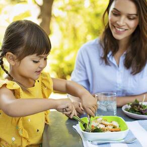 - Garfo e colher arredondados coletam alimentos com facilidade