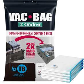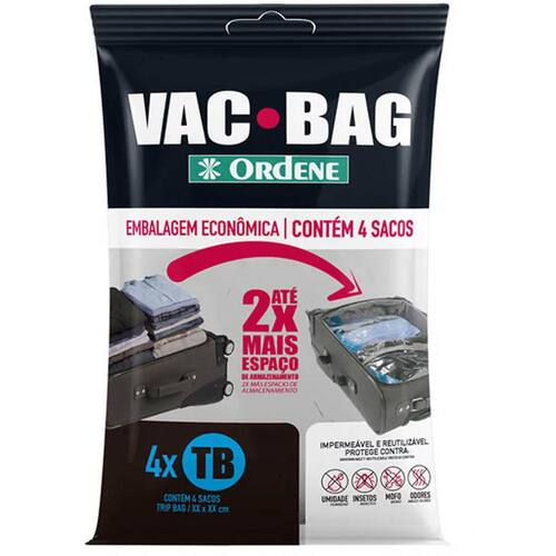 Garantia: 90 dias / Peso: 170g / Cor predominante: cristal / Referência: OR56600 Dimensões vac bag trip bag: 40cm (C) x 60cm (L) x 1cm (A); Material: polietileno; Conteúdo: 4 vac trip bag; OBS: - Impermeável e reutilizável, protege contra umidade, insetos, mofo e odores. - Não ultrapassar a linha delimitadora da embalagem. - Não utilizar com produtos de couro, nem alimentos. - Manter longe de crianças ou animais de estimação. - Não embalar nada pontiagudo ou com arestas.