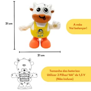Vaca Musical Cattle Funny a Pilha - Feng Sheng Com a Vaca Musical Cattle Funny a diversão é garantida, a Cattle Funny vem com uma dança elétrica e um estilo bonito para atrair os bebês. Ela vem com Iluminação suave para proteger os olhos e uma voz suave, ligado a pilha e com um botão na parte de trás para ligar.