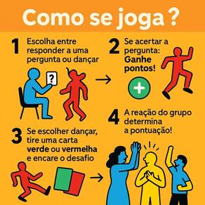 Ideal para festas, encontros e momentos descontraídos, o Vacilou, Dançou permite que os jogadores escolham entre responder perguntas ou encarar desafios de dança. A pontuação é definida pelas reações do grupo, tornando cada rodada ainda mais animada