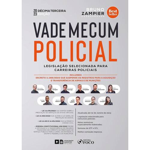 Sobre A Obra Vade Mecum Policial - Legislação Selecionada Para Carreiras Policiais - 13 Ed - 2023\N\N\N\N\N\NConteúdo:\N\N\N- Atualizada Até 31 De Dezembro De 2022;\N\N\N- Legislação Selecionada Para Concursos Policiais;\N\N\N Notas Remissivas Especialmente Elaboradas;\N\N\N Súmulas Do Stf E Stj;\N\N\N Melhor Conteúdo Impresso.\N\N\N\N\N\NApresentação\N\N\N Seja Muito Bem-Vindo À 12 Edição Do Vade Mecum Policial! Após O Sucesso Das Nove Primeiras Edições, Que Se Esgotaram, Apresentamos Esta, Ainda Mais Completa E Focada Nos Concursos Policiais. \N\N\NComo Professor De Cursos Preparatórios Para Concursos Públicos Desde O Ano De 2002, Percebemos Claramente A Cobrança Cada Vez Mais Específica E Relacionada Ao Cargo Pretendido. É A Chamada Pertinência Temática.\N\N\N Neste Sentido, Inicia-Se A Busca Pela Melhor Preparação Possível, Devendo O Candidato Frequentar Cursos, Ler Doutrina E Jurisprudência Direcionadas E, Claro, Ter Acesso À Vasta Legislação Exigida Pelos Editais.\N\N\N É O Que Naturalmente Ocorre Também No Âmbito Das Carreira