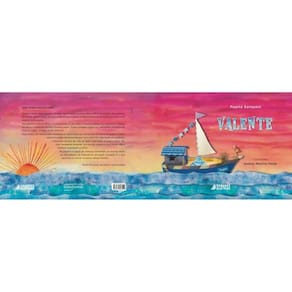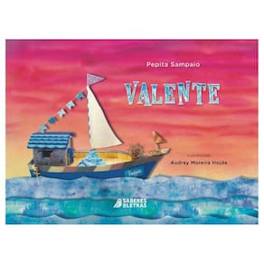 O texto conta a história de Valente, um barco que começa a narrativa como uma folha de jornal, dobrada por mãos firmes e marcadas pela vida em conjunto com mãos miúdas e vacilantes. O tempo passa e Valente é refeito em madeira e veleja no quintal. Quando Valente fica pequeno para suas aventuras, Capitão passa a sair para o mar num outro barco e, quando volta, traz peixes e sustento, mas não tem mais tempo para fantasia. Até que, um dia, Valente renasce em tamanho real e, finalmente, conhece mar e céu e descobre o que é felicidade. A prosa poética de Pepita Sampaio fala das fases da vida, da passagem do tempo, da chegada da maturidade – um tempo de descobertas e lembranças. Aborda também a relação pai e filho, a vida à beira-mar, a profissão de pescador. Psicologicamente, traz a questão de como mudamos ao longo de nossa existência, como as pessoas e as coisas influenciam nossa vida e nosso comportamento, como elas são capazes de nos transformar. As ilustrações de Audrey Moreira Hojda, construídas em forma de miniteatros, usam técnicas mistas, como aquarela, colagens, dobraduras e outros tipos de trabalhos manuais, evocando lembranças, cheiros, ruídos, formas, cores, texturas. Ao final, ela conta como foram realizadas e também sugere ao leitor a construção de seu próprio barquinho!