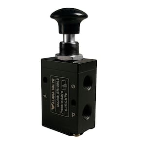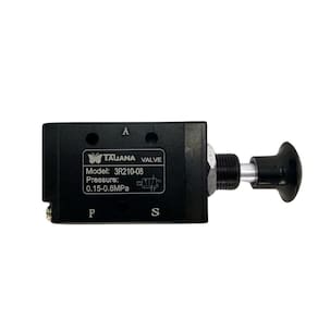 Valvula botao trava 3/2 vias 1/4 escape 1/4 - pn 3r210-08 Valvula 200 botao trava 3/2 vias 1/4 x000d Valvula mêcanica botão pneumatico serie 4r e 3r tipo: 5/2 vias, 3/2 vias com retorno mola, e com trava para ar comprimido e x000d Corpo e contra corpo em aluminio, eixo e pistão em inox, anel oring em buna n pressão de trabalho: minimo 0 bar maximo 8 bar temperatura 70c rosca bsp x000d T= trava na posição x000d M= mola retorna na posição ao soltar o botão. Serie 200 com cv = 0,89 serie 300 com cv 1,41 serie 400 com cv=1,78 x000d Marca: Não Informado Ean: 7908633115487