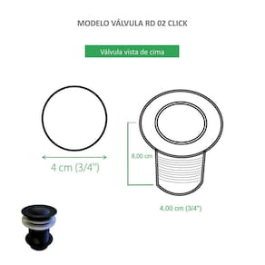 Válvula Click Preto Fosco para Cuba de banheiro Esta válvula click traz a alta tecnologia sofisticação e qualidade, ideais para quem busca praticidade e eficiência. Com a função do escoamento da agua, possui um sistema rapido e simples com um clique, ela abre e fecha. evita a entrada de insetos e do mau cheiro. Verifique as medidas do produto antes de efetuar a compra Especificações do produto: Válvula de escoamento Sistema Click Abre/Fecha ao apertar Para cubas de banheiro Não enferruja Evita o mau cheiro Evita a entrada de insetos Diâmetro 4,0 cm 1 ano Dimensões do produto nas fotos Informações Técnicas: - marca: Reno - modelo: RD 02 - material: Aço Inox - formato: Redondo - cor: Preto Fosco - diâmetro 4,0 cm ATENÇÃO: Não incluso cuba e torneira. Marca: Não Informado