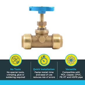 - Fácil de instalar: a inovadora válvula de latão SharkBite com ralo permite uma instalação rápida e fácil, sem necessidade de ferramentas, crimpagem, cola ou solda; pode ser instalado em linhas úmidas; remova usando um clipe de desconexão ou desconecte as pinças