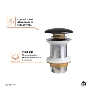 A Válvula de Escoamento para Cuba de Apoio de Banheiro é sofisticada e funcional com sistema click, que permite abrir e fechar o escoamento com apenas um toque, sendo compatível com cubas sem ladrão.