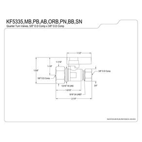 Válvula de parada reta Kingston Brass KF5335MB Baseline de 5/8 polegadas x 3/8 polegadas OD Comp, preta fosca