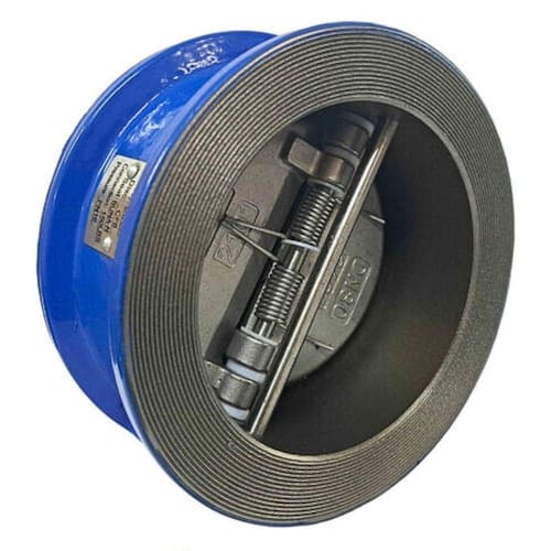 Seu formato é tipo Wafer, para que a instalação possa ocorrer entre flanges. Conta com um disco de vedação dividido em duas partes, que são movimentados através de uma mola fixada ao eixo (central). Esse método de portinhola funciona como uma dobradiça, liberando e bloqueando a passagem do fluxo.