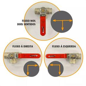 VÁLVULA ESFERA 3 VIAS FÊMEA, PASSAGEM EM T, 1.1/2