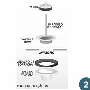 Válvula Inox Polido p/Lavatório 2.1/2" Tipo Universal c/Tampa Plástica
