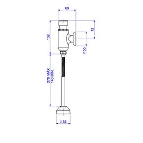 Instalada na parede, a válvula é indicada para mictórios em ambientes comerciais. Após o acionamento, o fluxo de água é liberado automaticamente por alguns segundos, realizando a limpeza completa do mictório e interrompendo o fluxo logo em seguida.