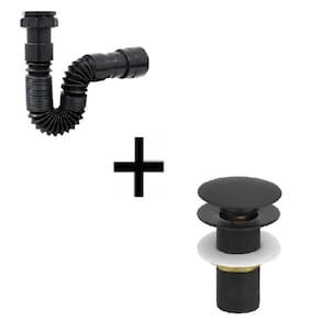 Kit Preto/Black Válvula Ralo Click Preto Fosco Lavatório 7/8 + Sifão Black