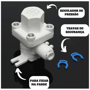 Válvula universal redutora de pressão para filtros purificadores de água de 1/4 de polegada. Garante fluxo estável e controlado, protegendo o sistema de filtragem contra pressões excessivas. Compatível com ampla gama de sistemas de filtragem. Prolonga a vida útil dos componentes internos.Bica móvel