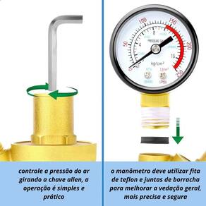 - Faixa de regulagem: 1 a 16 bar 250 psi