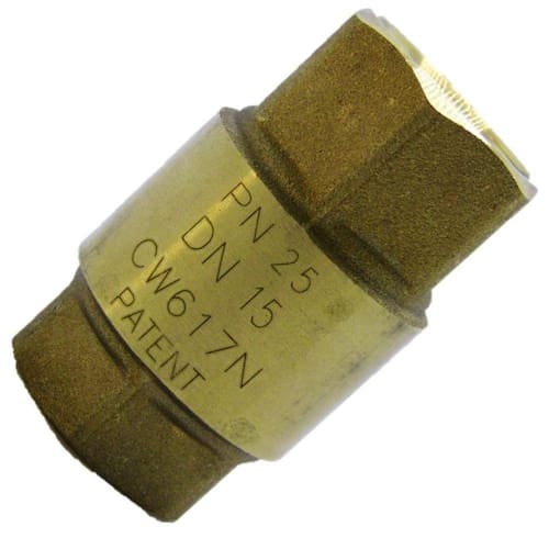 Válvula Retenção Linha Genebre 1/2 Com Mola Válvula Retenção Linha Genebre1/2 Com Mola Válvula de retenção universal RE-GE em latão BSP Instalação na vertical, horizontal ou inclinada.Construção em latão forjado UNE-EN 12165.Mola em inox AISI 304.Extremidades rosca gás (BSP) F-F, ISO 228-1.Baixa pressão de abertura.Ar -20C a 100C. Gás -20C a 60C.Água 0C a 90C.Pressão máx. 25 bar até 1, 18 bar de 1 1/4 a 2, 12 bar acima 2 à 80C.Vedação NBR.Art.: 3121 - Rosca BSP Referência de Fábrica3121 04