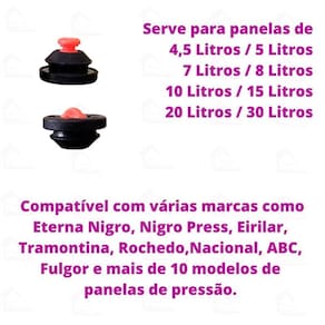 Kit com 20 válvulas de segurança rochedo - modelo grande para panela Garanta o bom funcionamento e a segurança da sua panela com este kit de válvulas rochedo modelo grande. Ideal para reposição em panelas de maior capacidade, oferece excelente vedação, resistência e compatibilidade com diversas marcas. Características: - modelo: rochedo - selo repetitivo grande - compatibilidade: panelas de 4,5l, 5l, 7l, 8l, 10l, 15l, 20l e até 30 litros - material: borracha e plástico de alta durabilidade - não deforma com o uso - uso: ideal para uso frequente, com segurança e praticidade Compatível com diversas marcas: - eterna nigro, nigro press, eirilar, tramontina, rochedo, nacional, abc, fulgor... E mais de 10 modelos diferentes de panelas Conteúdo da embalagem: - 1 pacote com 20 válvulas rochedo modelo grande Benefícios: - mais segurança: peça fundamental para evitar acidentes durante o uso da panela - durabilidade: ideal para quem trabalha com manutenção de panelas ou usa com frequência - versatilidade: compatível com panelas de alta capacidade e diversas marcas tradicionais do mercado A dona li utilidades atua há mais de 50 anos no mercado, selecionando itens de qualidade e confiança para facilitar o dia a dia da sua cozinha. - compra segura e garantida - do vendedor: 7 dias Dicas importantes: - sempre verifique as condições da válvula antes de usar a panela - não ultrapasse a capacidade de sua panela - mantenha a limpeza e conservação das peças em dia Manutenção em dia = panela segura Adquira já o seu kit e mantenha suas panelas funcionando com total segurança