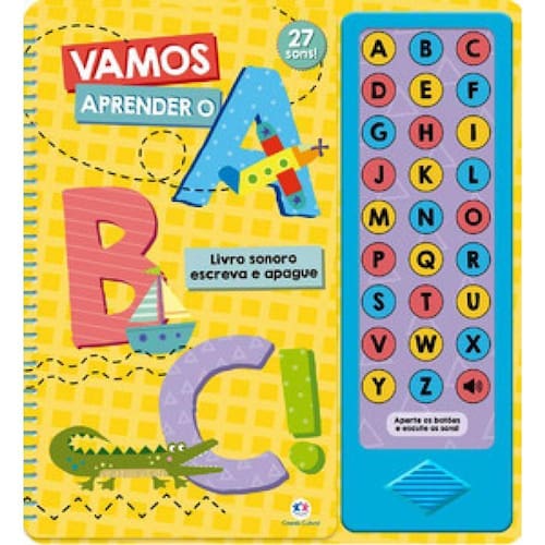 Vamos aprender o abc livro sonoro e escreva e apagueQual é o som do avião E do barco Aprenda o alfabeto, enquanto ouve diferentes sons e faz atividades no decorrer das páginas. Use a caneta para escrever e, depois, apague com um pano seco.Mais detalhes:Subtitulo: vamos aprender o abc livro sonoro e escreva e apaguePaginas: 12Tipo de capa: brochuraIsbn: 9786555006414Isbn10: 6555006412Data publicação: 30/12/1899Edição: 1Idioma: portuguêsCondição do Item: NovoTipo de Narração: ManualFormato: PapelQuantidade inclusa: 1