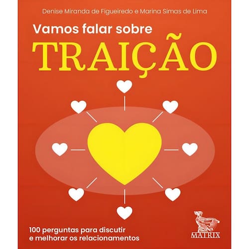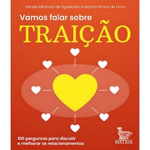 Título do livro : Vamos falar sobre traição Subtítulo do livro : 100 perguntas para discutir e melhorar os relacionamentos Autor : Miranda de Figueiredo, Denise Idioma : Português Editora do livro : Editora Urbana Ltda Ano de publicação : 2022 Quantidade de páginas : 100 Altura : 100 mm Largura : 80 mm Peso : 180 g Coautores : Simas de Lima Marina Data de publicação : 06-01-2022 Gênero do livro : Autoajuda
