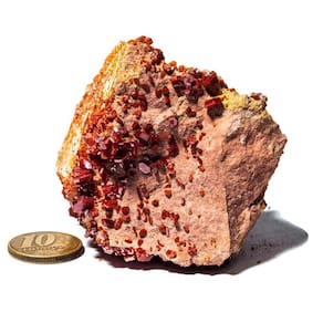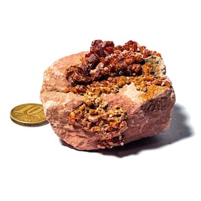Vanadinita na Base de Laterita - Pedra Natural Bruta Destaques do Produto:\nTipo: Vanadinita sobre Laterita - Mineral Natural Bruto\nPeso: 100 a 150g \nDimensões: Média 60 a 90mm (Podendo variar para mais ou menos conforme o peso, o critério de separação das peças é o peso.)\nCor: Tons ocres com cristais avermelhados\nEstado: Mineral bruto não lapidado\nOrigem: Brasil\nDescrição do Produto Esta é uma autêntica Vanadinita natural sobre base de Laterita, uma peça rara e altamente valorizada por colecionadores de minerais e praticantes de terapias holísticas. Com Média de 70mm excelente tamanho, também pode ser potencialmente utilizada para lapidação em cabochão devido à sua integridade estrutural. A Vanadinita é um mineral do grupo dos vanadatos, com cristais geralmente avermelhados ou alaranjados que se destacam sobre a base terrosa da Laterita. A peça apresenta textura bruta e formação natural, ideal para quem busca um exemplar único e de alto valor mineralógico ou esotérico. Utilizações e Benefícios Para Colecionadores:Uma peça de alto valor estético e mineral, com cristais bem formados sobre matriz de Laterita. Ideal para exposição em vitrines ou composições de coleção temática. Para Uso Esotérico e Energético:A Vanadinita é conhecida por suas propriedades de foco mental, aterramento e organização dos pensamentos. É uma pedra útil para quem precisa manter a mente clara, especialmente em momentos de estudo, planejamento ou decisões importantes. Lapidação:A peça possui bom tamanho e integridade para eventual lapidação em cabochão, ampliando suas possibilidades de uso em joias ou ornamentos esotéricos. Marca: CristaisdeCurvelo