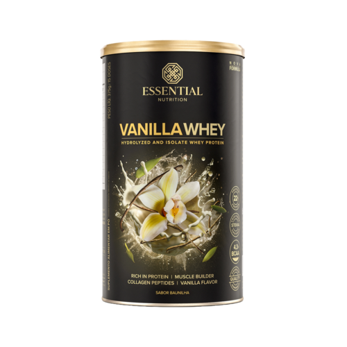 A Vanilla Whey Essential Nutrition 375g é uma proteína com notas de baunilha e muito versátil. Pura, misturada com frutas ou água de coco, fica uma delícia. Sua fórmula é uma combinação de Whey Protein Hidrolisado e Isolado, aroma de baunilha, além de colágeno hidrolisado em peptídeos que agregam valor à fórmula e complementam a ação do produto.