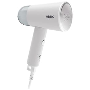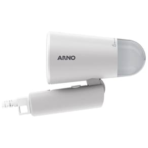 Vaporizador de roupas Arno Steam Travel, compacto, dobrável e leve, ideal para viagens. Vapor contínuo de 20g/min, aquecimento rápido em 25 segundos, inclui acessório de remoção de pelos e bolsa de viagem.Lâmpada piloto
