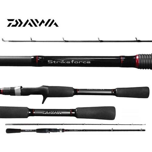 Vara de Carretilha Daiwa Strikeforce, de excelente qualidade,forte e resistente, misto de fibrade vidro com carbonolindo acabamento do cabo em E.V.A de alta densidade, 2 partes para melhor transporte.