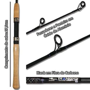 Vara De Pesca Eupro 1,82m 6-15lb Diamond DSS602 Molinete Vara de Pesca Eupro DIAMOND Sportman Special 1,82m 6-15lb DSS602 Para Molinete A Vara de Pesca Eupro DIAMOND Sportman Special DSS é sem dúvida uma ótima opção para as mais diversas modalidades de pesca com iscas artificiais ou naturais. Blank fabricado em carbono IM8 de alta qualidade em duas partes e conta ainda com cabo em cortiça especial. Resistente , leve e versátil pode ser utilizada em rios, lagos e mares em diversas modalidades, sempre respeitando as especificações de linha e peso de arremesso. Reel Seat e passadores de alta qualidade. Especificações: Incluso: 1 Vara e 1 Capa Protetora Modelo: Diamond DSS602 - Tipo de Vara: Para Molinete - Comprimento Total da Vara: 6&39; 1,82m - Material da Vara: Fibra de Carbono - Numero de Partes: 2 Partes - Comprimento Total do Cabo: 37,5cm - Material do Cabo: Cortiça - Linha PE: 6-15 lb 2,76,8kg - Isca: 1/8-3/8 3-10g - Peso: 125g - Ação: Média - Passadores: 5 passadores + 1 ponteira - Ponteira: 2mm Origem: China