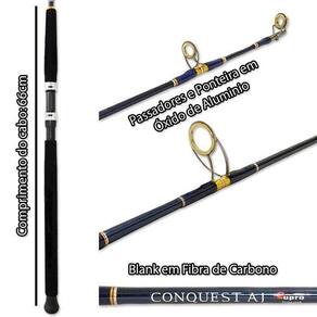 Vara leve composta por blank haste em Fibra de Carbono, passadores reforçados em Aço Inoxidaxel e cabo em borracha EVA.