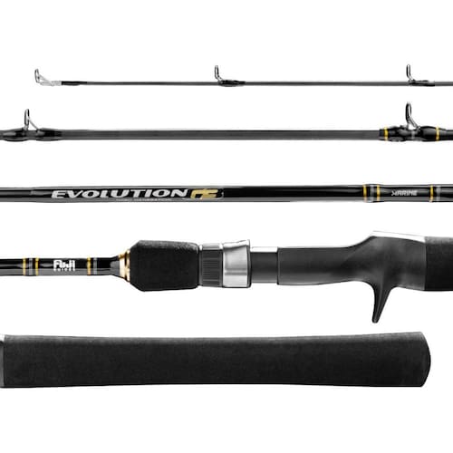 - Marca: Marine Sports - Modelo: Evolution G3 C581MM - Tipo: Carretilha - Tamanho: 1,73m - Partes: 1 (Inteiriça) - Potência: Média - Linha Recomendada: 8-17lbs - Material do Blank: Carbono Maciço - Cabo: EVA - Casting (Peso de Arremesso): 7-20g - Passadores: 6 + ponteira - Material dos Passadores: Fuji - Peso Aproximado: 200g - Cor: Preta com detalhes dourados