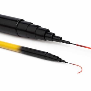 Vara telescópica lisa, leve, resistente, possui gomos curtos, com tubos reforçados e de fácil transporte, pois, quando fechada ocupa pouco espaço.