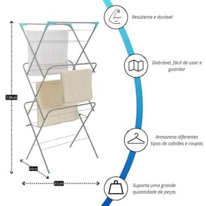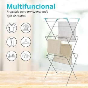 Estrutura dobrável e portátil: Dobra como um acordeão para facilitar o armazenamento em espaços reduzidos como lavanderias, varandas ou até atrás de portas.