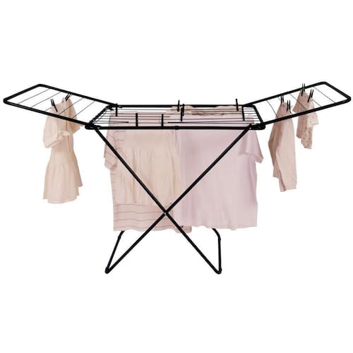 Marca: Mor | Modelo: Maxi | Fonte do produto: Nacional | É elétrico: Não | Origem: Nacional | Peso: 3,78 kg | Peso máximo suportado: 25 kg | Condição do item: Novo | É extensível: Não | Materiais: Aço Pintado | Com asas desdobráveis: Sim | É kit: Não | Lugar de colocação: Área Cor: Preto