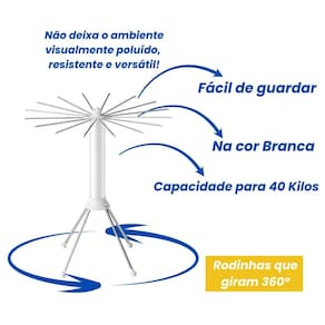 Alta Capacidade: suporta até 40 kg de roupas, ideal para o uso diário da família.