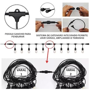 Cordão de 10 Metros, com capacidade para até 10 lampadas incandescente, fluorescente ou led é flexivel e oferece iluminação ideal para o seu ambiente.