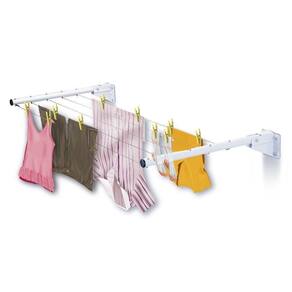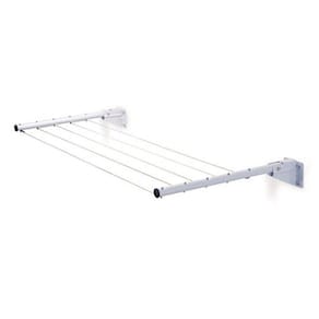 - 01 Varal De Parede Articulado 02 Hastes Pintada Epóxi - 18 Metros de Corda Nylon Branca08 Parafusos com buchas para fixação na parede