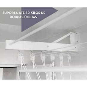 Com capacidade para 10 varetas, esse varal oferece espaço suficiente para pendurar suas roupas, lençóis e toalhas, otimizando o espaço disponível em sua lavanderia. Sua instalação na parede é simples e rápida, permitindo que você o posicione de acordo com suas necessidades.