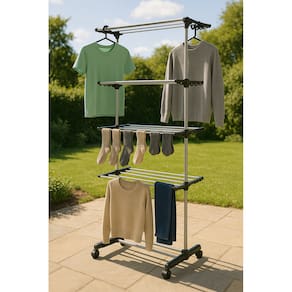 Otimize seu espaço com este varal de roupas vertical dobrável, ideal para quem busca funcionalidade, resistência e organização na hora de secar roupas. Com estrutura em ferro de alta qualidade, oferece excelente durabilidade e estabilidade, mesmo com carga total.