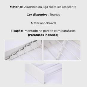 7894100135310varal Retrátil de Parede 60cm, Economia de Espaço com Estilo Transforme qualquer cantinho da sua casa em um espaço funcional e organizado com o nosso varal retrátil dobrável de parede de 60cm Com um design moderno, minimalista e extremamente prático, ele é a solução ideal para quem precisa de versatilidade sem abrir mão da elegância. Pronto para surpreender: Com apenas 4cm de profundidade quando fechado, passa quase despercebido no ambiente. Aberto, oferece 60cm de estrutura firme e resistente para secar roupas, pendurar toalhas, organizar sapatos ou até brinquedos Ideal para: Lavanderias pequenas Quartos e closets Banheiros Varandas Quartos infantis como porta-brinquedos Fácil de instalar, acompanha suporte para fixação na parede. Características Técnicas: Material: Aço com Pintura eletrostática Tamanho aberto: 60cm largura x 40cm profundidade x 9,5cm altura Tamanho fechado: Apenas 4cm de profundidade Dobrável e retrátil: Ganhe espaço com praticidade Cores disponíveis: Branco Peso aproximado: Leve e fácil de manusear Instalação: Fixação direta na parede com parafusos inclusos Este varal também pode ser como suporte para roupas passadas, organizador de roupas do dia a dia ou até mesmo como expositor de produtos leves em lojas físicas Marca: Não Informado Ean: 7894100135310