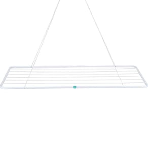 O Varal de Teto é a solução perfeita para quem não dispõe de muito espaço para secar as suas roupas. Muito bem planejado, acompanha um kit para que você possa fixá-lo no teto e corda para que a altura possa ser regulada de acordo com sua necessidade. Possui estrutura em tubo de aço com acabamento em pintura epóxi a pó branca e peças plásticas em polipropileno. Tem capacidade para 10,96 metros ou 20 Kg de roupas úmidas distribuídas uniformemente. Extremamente resistente, é indicado principalmente para regiões litorâneas. Leve e durável, possui qualidade nos acabamentos, garantia dos produtos Mor.