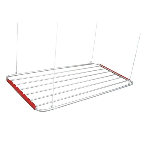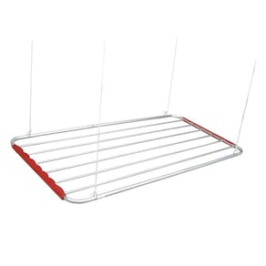 Varal de teto em alumínio - 80 x 56 cm. Suporta até 4,5 Kg de Roupas e/ou 6.4m lineares. Ganhe espaço e organização com este belo varal, inclusos: manual de instalação, corda, roldanas, buchas e parafusos.