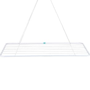 O Varal de Teto é a solução perfeita para quem não dispõe de muito espaço para secar as suas roupas. Muito bem planejado, acompanha um kit para que você possa fixá-lo no teto e corda para que a altura possa ser regulada de acordo com sua necessidade. Possui estrutura em tubo de aço com acabamento em pintura epóxi a pó e peças plásticas em polipropileno. Tem capacidade para 9,3m ou 14Kg de roupas úmidas distribuídas uniformemente. Extremamente resistente, é indicado principalmente para regiões litorâneas. Leve e durável, possui qualidade nos acabamentos, garantia dos produtos Mor.