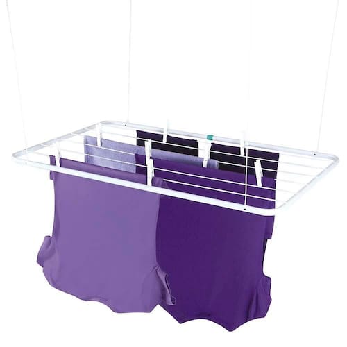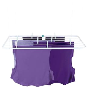 O Varal de Teto é a solução perfeita para quem não dispõe de muito espaço para secar as suas roupas. Muito bem planejado, acompanha um kit para que você possa fixá-lo no teto e corda para que a altura possa ser regulada de acordo com sua necessidade. Possui estrutura em tubo de aço com acabamento em pintura epóxi a pó branca e peças plásticas em polipropileno. Tem capacidade para 6,95m ou 12Kg de roupas úmidas distribuídas uniformemente. Extremamente resistente, é indicado principalmente para regiões litorâneas. Leve e durável, possui qualidade nos acabamentos, dos produtos Mor.